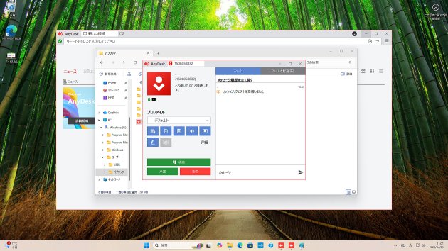 サポート担当者が接続を試みると、承諾を求めるウィンドウが表示されます。「承諾」ボタンをクリックすると、リモート操作が開始されます。