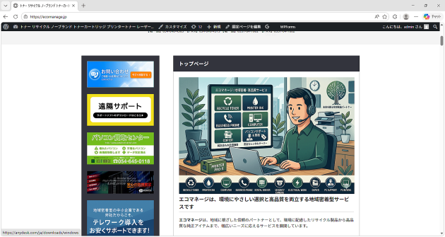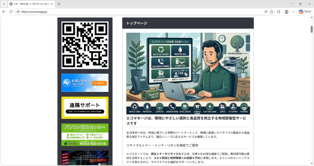 株式会社エコマネージのトップページが表示されたことを確認します。