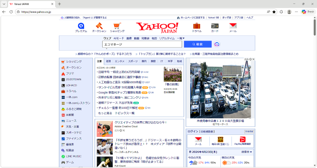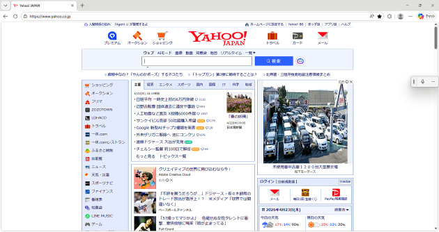 当ブラウザを起動し、Yahoo! JAPANなどの検索エンジンを開きます。
