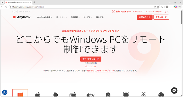 AnyDeskのダウンロードページに移動します。「今すぐダウンロード」ボタンをクリックしてください。